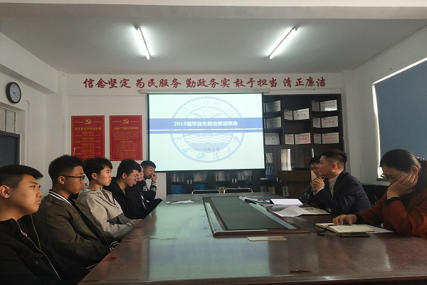 3月26-27日,公司于公司会议室开展2019届毕业生就业推进班会,党总支书记高璐璐、经理赵前程、副经理任丹丹、武龙、党总支副书记彭本超、李莹、团委书记唐珏及2019届毕业生参加会议。会议由团委书记唐珏主持。