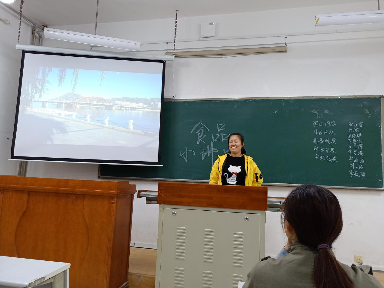 本次活动以寝室为单位,寝室成员依次进行演讲,最终将在各班选出两名优胜者进入决赛。演讲中,同学们就自己所了解到的食品知识,向大家或介绍自己喜欢的美食及其文化,或对当今社会食品相关问题发表自己的见解。