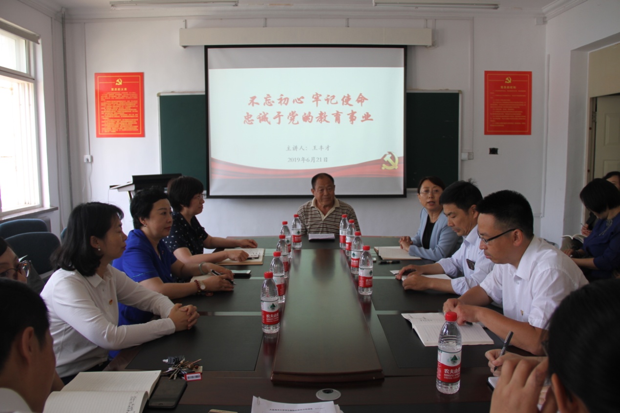 会上,王丰才结合个人多年从教经验及退休后的教学督导工作经历,用诙谐幽默的语言从“公司的发展变化”、“教师天职:传道、授业、解惑,教书育人”、“面对现实,正视员工实际情况”、“忠诚于党的教育事业,辛勤耕耘,桃李满天下”等四个方面详细阐释了一名老党员、老教师的初心和梦想,并号召各位教师要认真对待每一名员工,用心上好每一堂课,忠诚于党的教育事业,做一名合格的党员、优秀的教师。