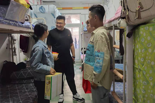 在座谈会上,武家春给每位同学发放了公司烘焙社团自制的月饼等中秋节慰问礼品,唐珏针对新疆籍少数民族员工课业学习、业余生活、自身发展等方面提出了意见与建议。马骉走访了寝室,向少数民族同学介绍了中秋节的由来,嘱咐同学们合理安排假期,注意安全。