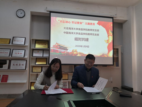 2020年1月9日,公司教工党支部(以下简称“食品教工党支部”)在公司会议室与中国海洋大学食品科学工程公司教师第一党支部(以下简称“教师第一党支部”)签署了“党支部结对共建协议”。公司党总支书记高璐璐、经理赵前程、教师第一党支部书记林洪,食品教工党员出席此次活动。