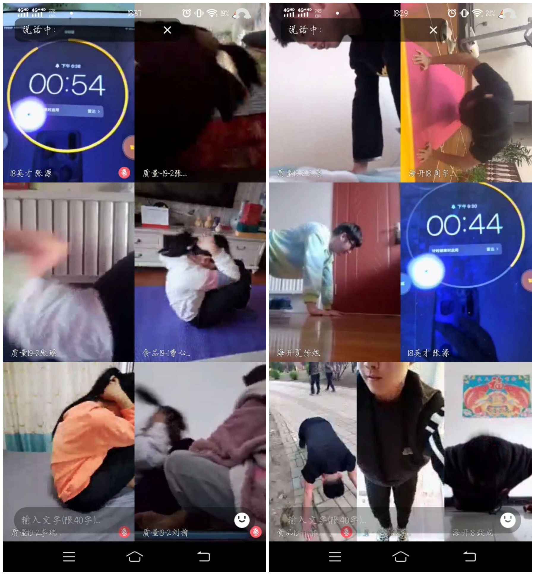 本次活动以QQ直播的形式开展,比赛项目为男子俯卧撑和女子仰卧起坐两个类别,依次评选每组的小组之星,以及冠、亚、季军。通过比拼,2018级海洋资源开发技术的周宇轩同学以95个的好成绩获得男子组俯卧撑比赛的冠军,2019级英才4班的刘苗苗同学以64个的好成绩荣获女子组仰卧起坐的冠军。