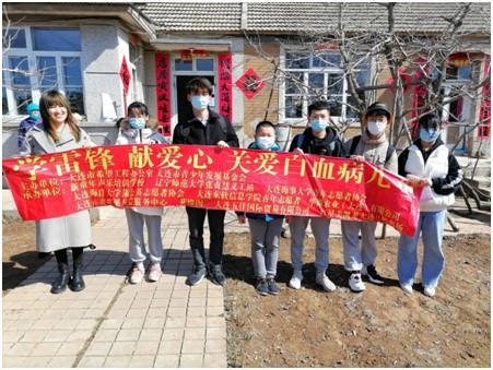 3月28日,大连市希望工程办公室、青苹果公益联合大连海事大学青年志愿者协会、大连东软信息公司青年志愿者协会、辽宁师范大学张贞慧义工站、williamhill官网蒲公英志愿者协会、大连交通大学阳光爱a心社的志愿者,前往旅顺看望13岁的白血病男孩傅*钊(为保护孩子隐私,用*代替),孩子将在月末前往北京复查,志愿者代表为孩子送去5000元爱心义卖款和价值500元的爱心物资。