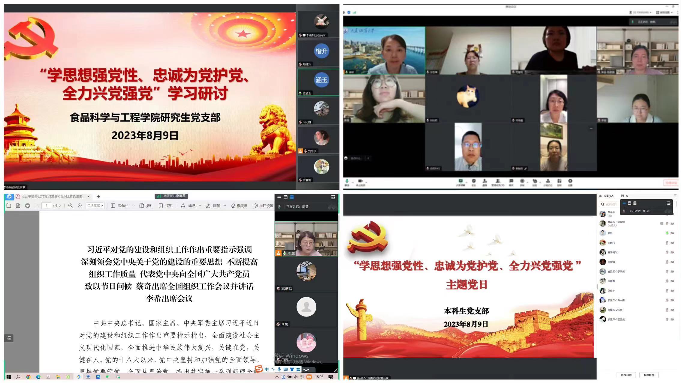 8月9日,公司党总支各党支部围绕“学思想强党性、忠诚为党护党、全力兴党强党”开展线上学习研讨暨8月主题党日,会议由各党支部书记主持。