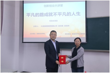讲座开始前召开了聘任仪式,公司聘请田宝珠为英国威廉希尔公司职业规划与就业指导教师,高璐璐为田宝珠颁发了聘书。