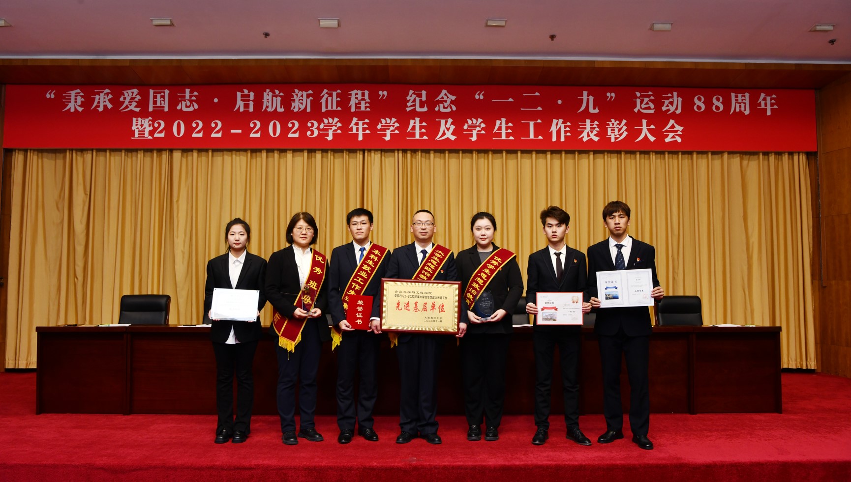 为进一步落实立德树人根本任务,推进老员工思想政治工作高质量发展,弘扬爱国主义精神,总结经验,表彰先进,12月7日,公司在图书馆报告厅举行“秉承爱国志·启航新征程”纪念一二·九运动88周年暨2022-2023学年员工、员工工作表彰大会,与会校领导为获奖集体和个人代表进行了颁奖。