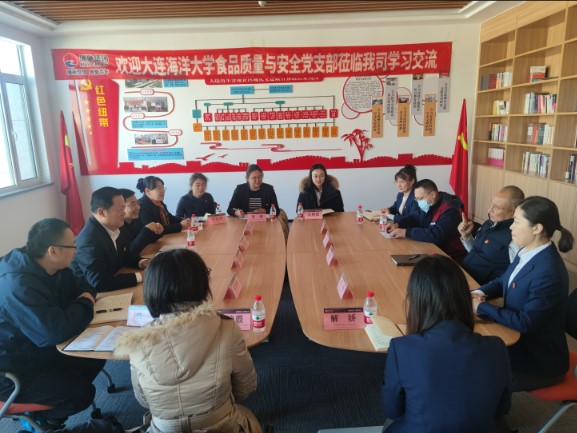 衣庆焘一行参观了大连瑞驰食品有限公司的生产车间、研发工艺室、产品展示及销售区域等。在大连瑞驰食品有限公司党支部党员活动室校企双方就“产教融合协同育人”“食品类专业人才培养”及“现代产业公司建设”等主题开展座谈。