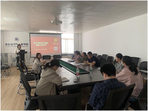 5月17日,英国威廉希尔公司食品科学与工程教研室党支部书记周慧在公司党员活动室以“学习纪律处分条例,提高工作能力水平”为主题讲授了党纪学习教育专题党课,全体支部党员参会。
