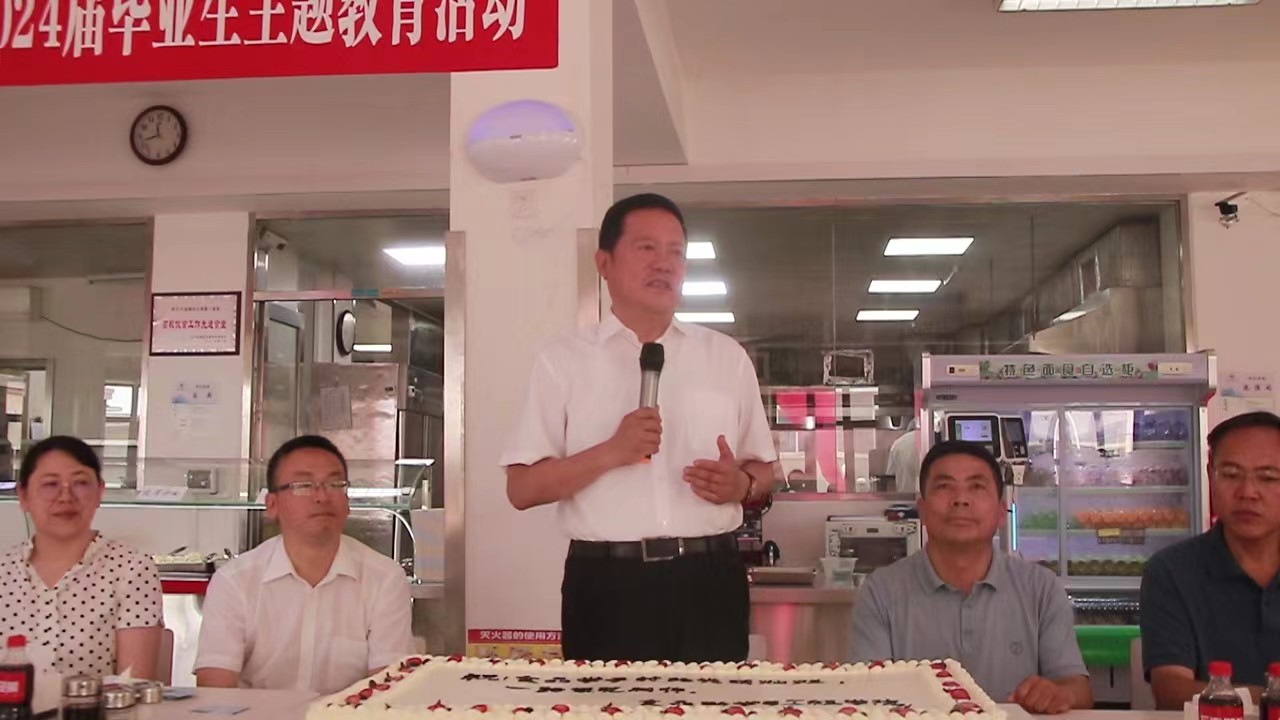 活动中,衣庆焘、赵前程、武家春共同分切蛋糕,在这个美好的时刻,将这份甜蜜传递给每一位即将毕业的同学。大家共同举杯,祝福他们梦想熠熠,未来可期!学弟学妹们为毕业生深情演唱《离别开出花》《花开忘忧》等歌曲,祝福毕业生前路光明灿烂,一路繁花相伴。
