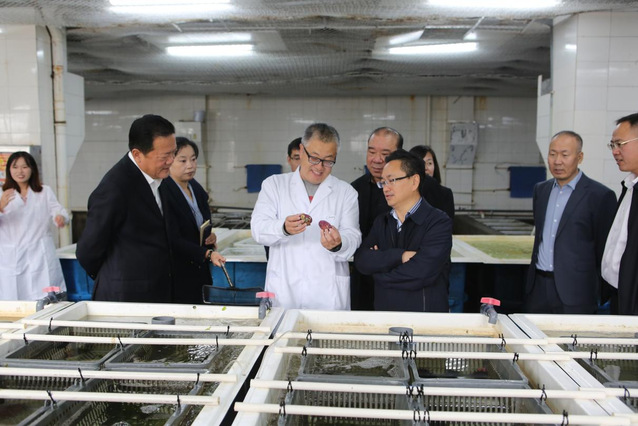 会前,陈兆云一行参观了公司黑石礁校区海洋强国广场、农业农村部北方海水增养殖重点实验室和设施渔业教育部重点实验室。