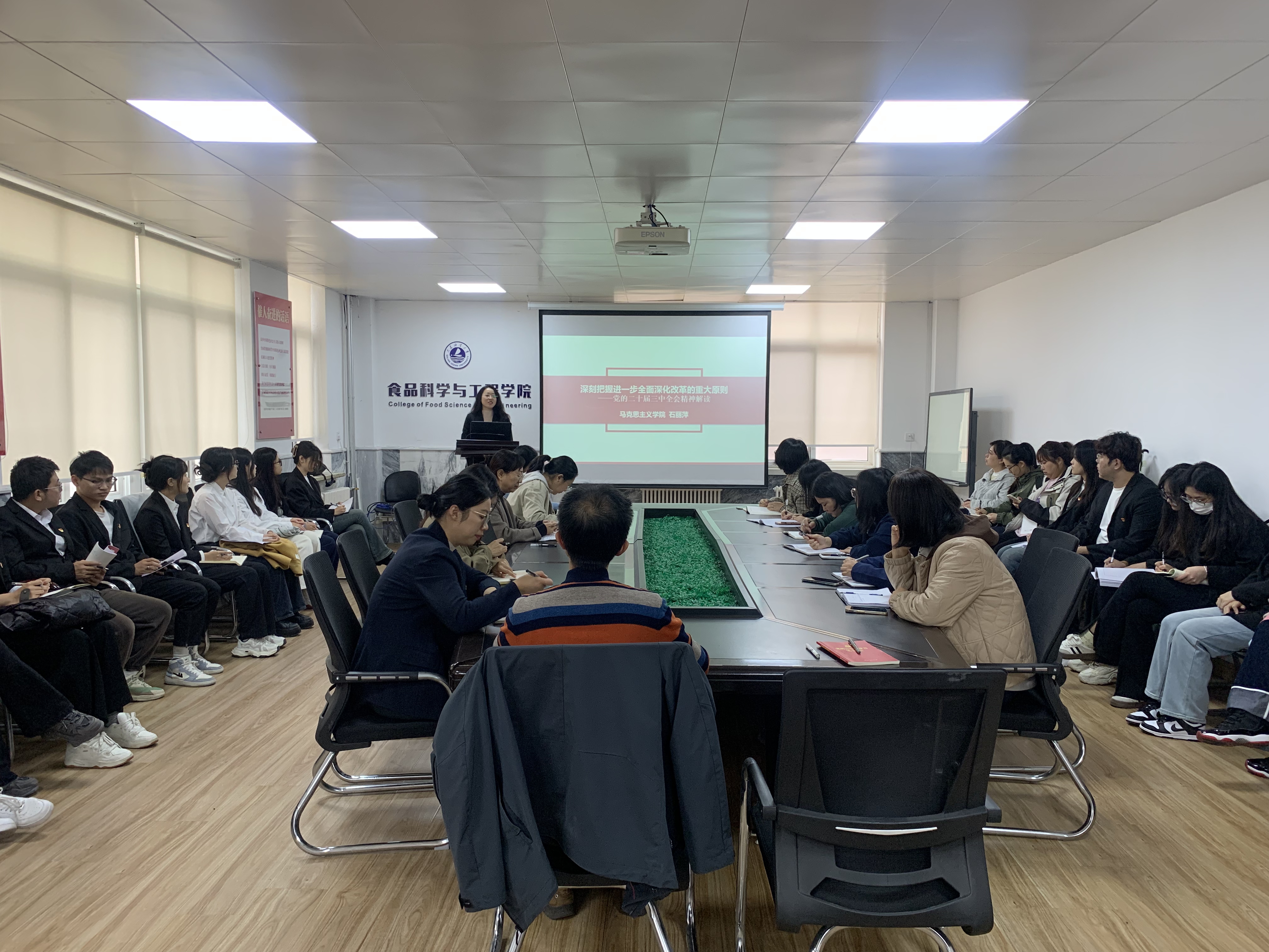 石丽萍以《深刻把握进一步全面深化改革的重大原则——党的二十届三中全会精神解读》为主题,从“党的二十届三中全会的召开背景”、“党的二十届三中全会的重大意义”、“会议的有关情况及《决定》的结构框架”、“深刻把握进一步全面深化改革的重要原则”、“奋力谱写高水平海洋大学新篇章”等五个方面进行宣讲,对党的二十届三中全会精神进行了深入阐释和解读。