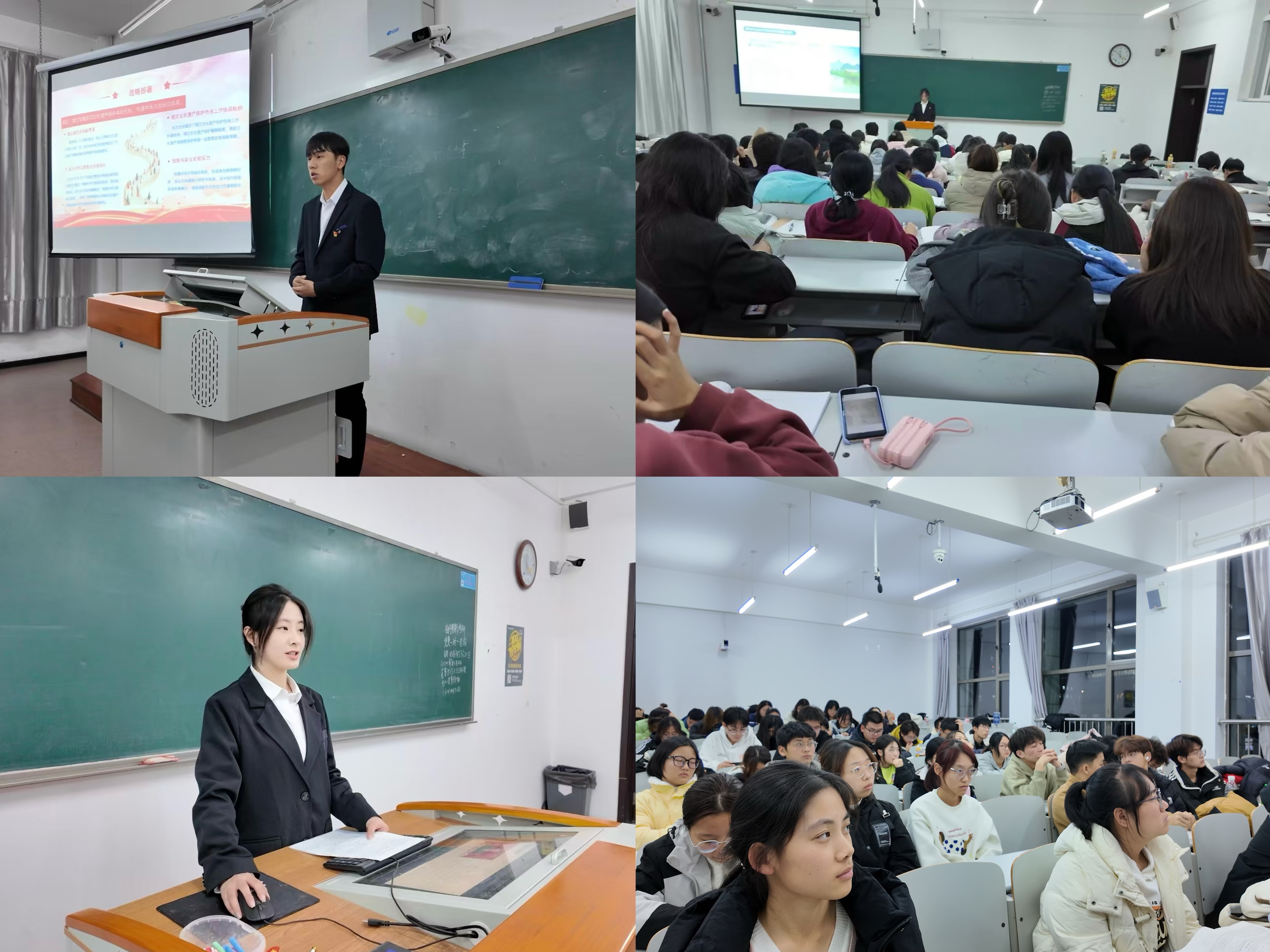 王玉成以“深化文化体制机制改革,推动社会主义文化强国建设”为题,解读深化文化体制机制改革深远意义,剖析了时代背景下的文化体制机制改革内涵,战略部署及其主要实施策略。王乙婷以“聚焦生态文明体制改革”为题,深入浅出地阐述了生态文明体制改革的紧迫性和重要性,详细介绍了改革的具体措施和长远目标。通过对比改革前后的变化,向同学们展示了生态文明建设的积极进展和未来愿景。